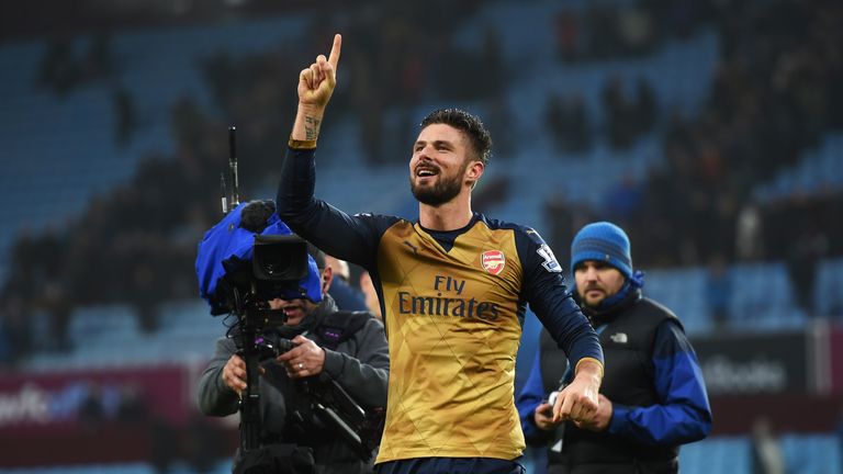 Olivier Giroud celebrates Arsenal's win over Aston Villa